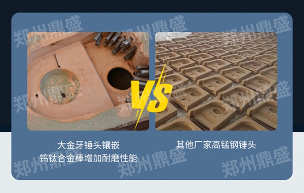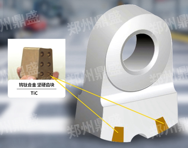 大金牙錘頭本體如同鑲牙一般鑲鑄極其堅硬的鎢鈦合金齒塊尤其適合高硅、堅硬、強磨蝕性石灰石。