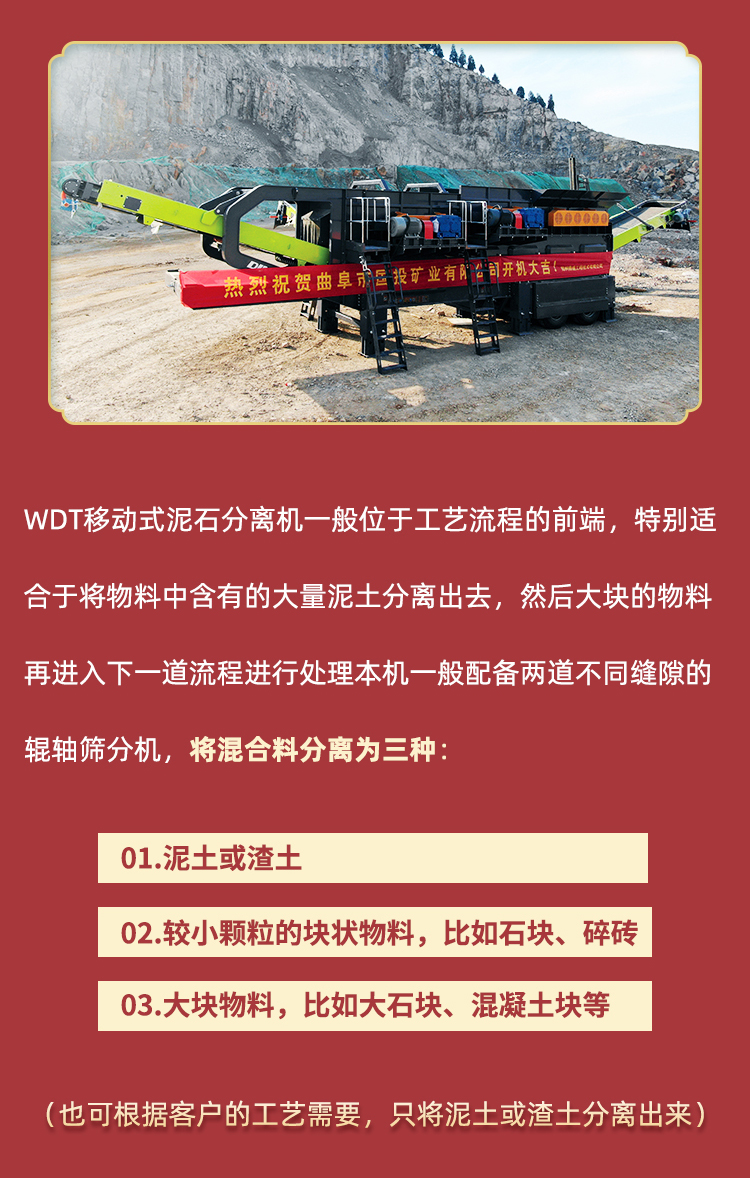 移動式泥石分離機(jī)是一種可將粘土等雜質(zhì)與石材分離的設(shè)備,它可以很好地分離和篩選泥石。加工后的石材質(zhì)地均勻、干凈、價格高,在建筑市場更受歡迎。只需要一臺粘土泥石分離機(jī),離高品質(zhì)砂石只有一步之遙!