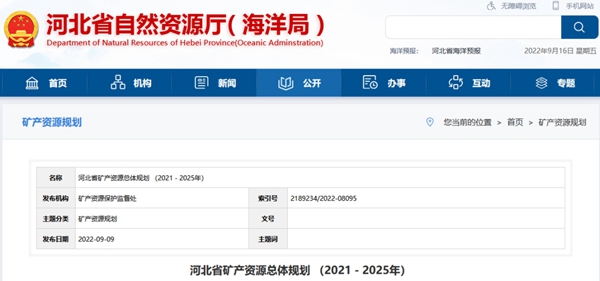 《規(guī)劃》提到,河北省是礦產(chǎn)資源大省,礦產(chǎn)資源賦存比較豐富,已發(fā)現(xiàn)各類礦產(chǎn)130種,礦產(chǎn)資源主要分布在太行山和燕山山區(qū),區(qū)域特色明顯。煤炭主要分布在唐山、邯鄲、邢臺、張家口,鐵礦主要分布在唐山、邯鄲、邢臺、承德,金、銀等貴金屬礦產(chǎn)主要分布在唐山、張家口、承德、石家莊,鉛、鋅、銅、鉬等有色金屬礦產(chǎn)主要分布在張家口、保定、承德,石灰?guī)r、白云巖等建材類非金屬礦產(chǎn)主要分布于淺山區(qū),地熱資源主要分布在河北平原中北部。