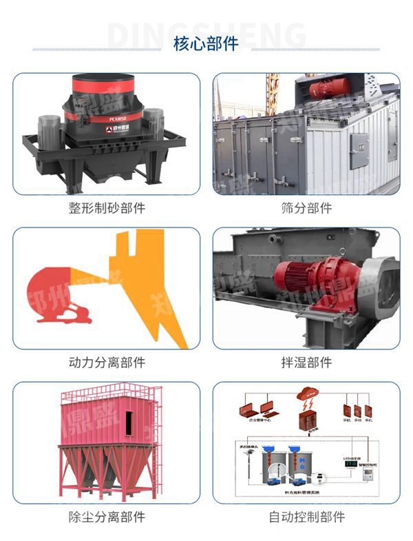 DSV干式制砂系統(tǒng)采用高度集成的塔樓式設計,集合多項性能優(yōu)勢于一體,由提升模塊、制砂模塊、高頻篩分模塊、石粉控制模塊、細砂回收模塊、加濕控水模塊、收塵系統(tǒng)、智控系統(tǒng)等各部分組成。