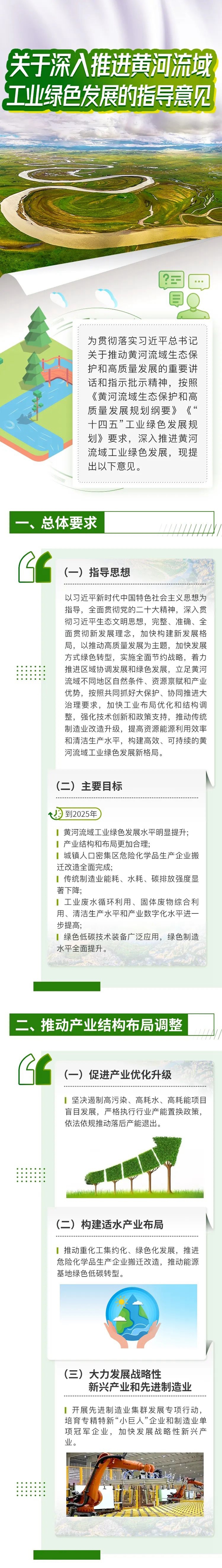 為貫徹落實習近平總書記關于推動黃河流域生態(tài)保護和高質量發(fā)展的重要講話和指示批示精神,按照《黃河流域生態(tài)保護和高質量發(fā)展規(guī)劃綱要》《“十四五”工業(yè)綠色發(fā)展規(guī)劃》要求,深入推進黃河流域工業(yè)綠色發(fā)展,現(xiàn)提出以下意見。