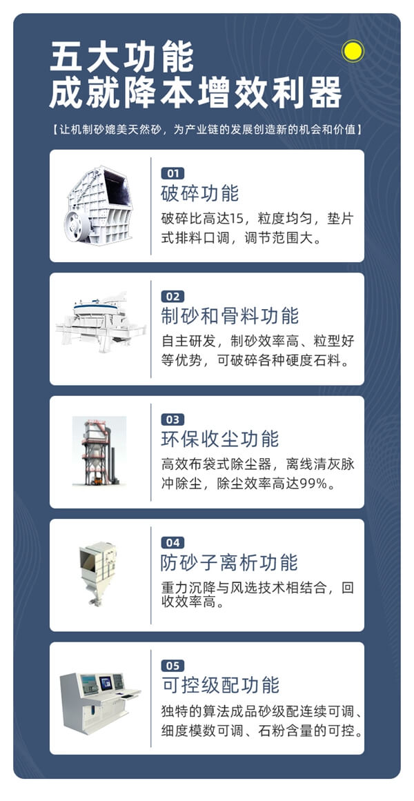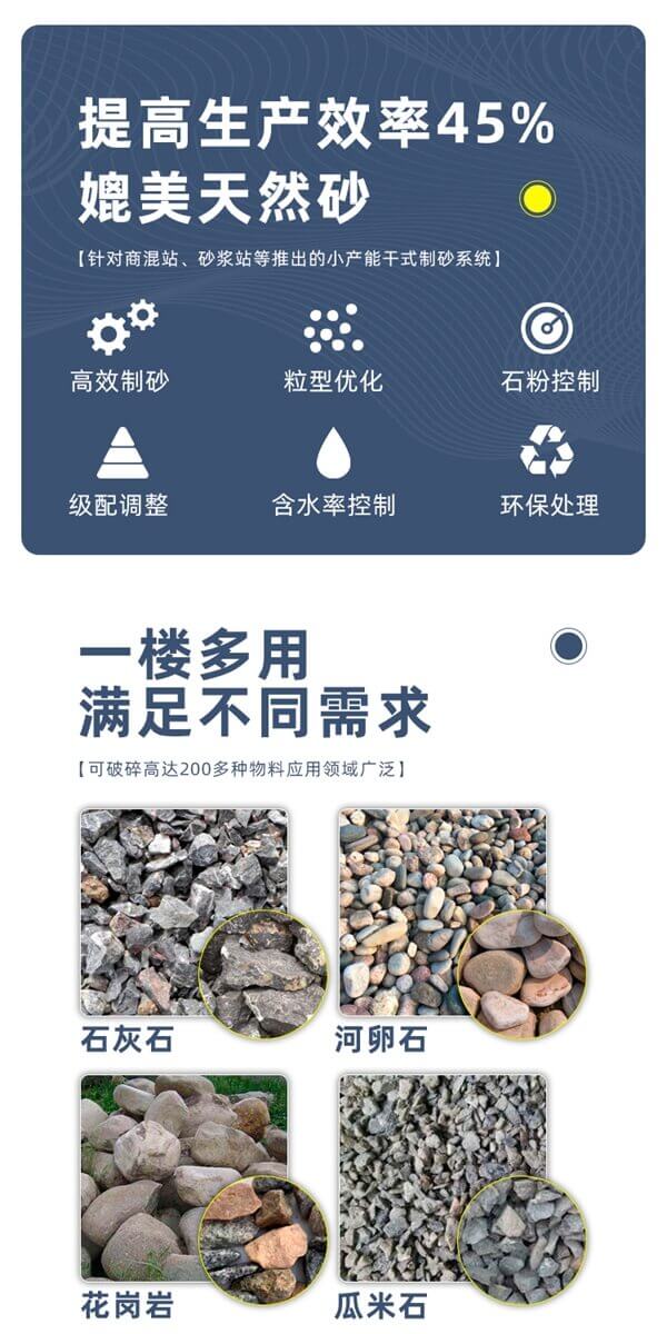 重慶客戶采用鼎盛樓式制砂系統(tǒng),功能多樣,可“砂石同出”,也可“純制砂”;滿足了機制砂生產(chǎn)線的需求。