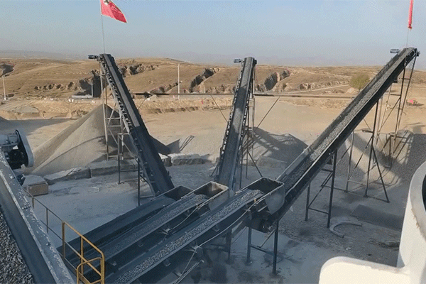 原料由自卸車倒入原料倉中,經振動篩分給料機均勻地給料,同時原料經振動篩分給料機前端蓖條分離出兩種不用粒徑的物料,>100mm的物料進去到顎式破碎機進行粗破碎,破碎后經皮帶機進入到中細破碎。